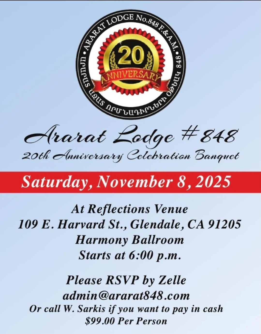 Ararat No. 848 – 20th Anniversary Banquet – DGM Representing