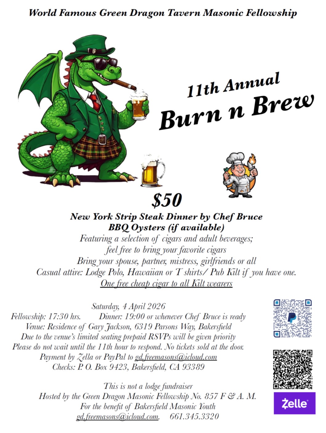 Green Dragon Masonic Fellowship No. 857 – Burn n Brew