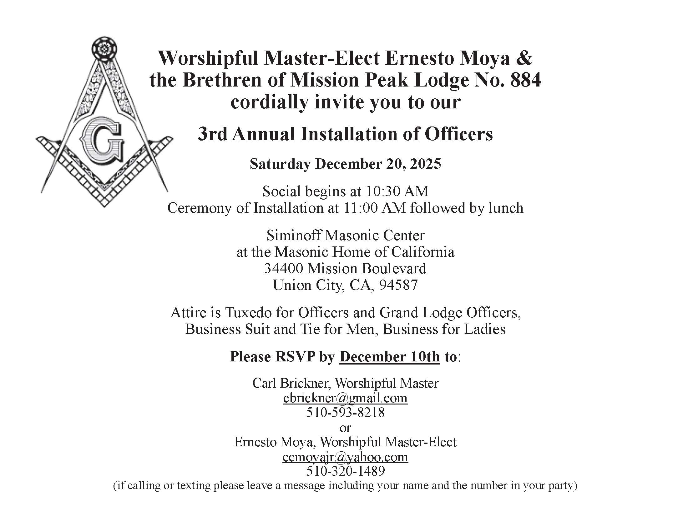 - Invited: Grand Lodge Officers, Masons, Public, Spouses and Partners, By Invitation or Registration